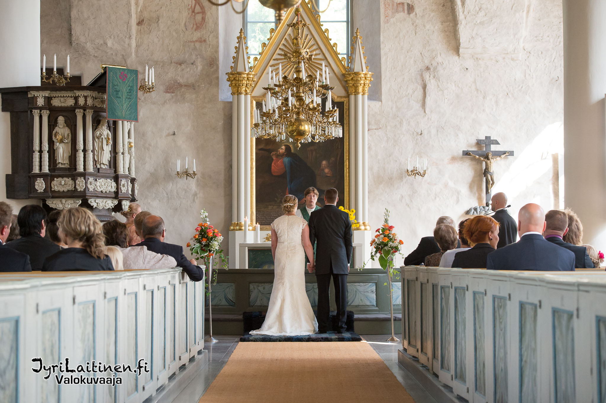 Syyskuinen lauantai tarjosi upeat puitteet häille, pikku sateesta huolimatta. Vihkiminen oli Pyhän Pietarin kirkossa, joka on 1400 -luvun lopulta oleva upea kivikirkko. Juhla oli Siuntion Lepopirtillä. Siuntiossa piisaa kaunista maisemaa ja peltoa, mutta sään ja aikataulun takia kuvasimme tällä kertaa Lepopirtin läheisyydessä.