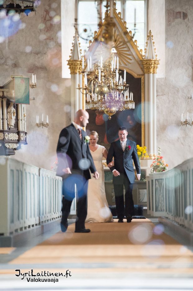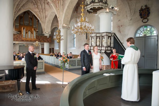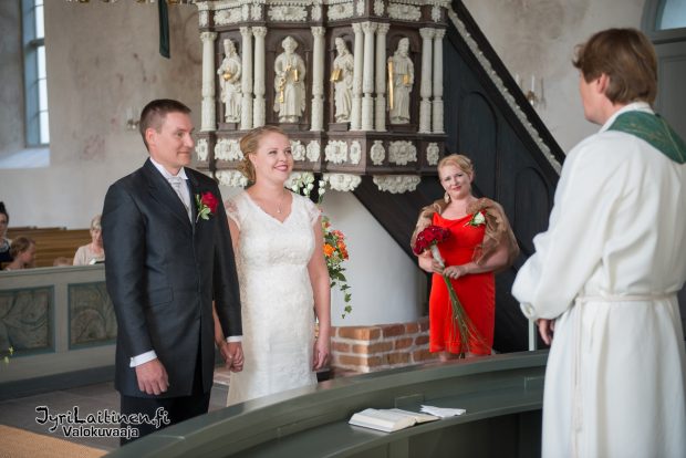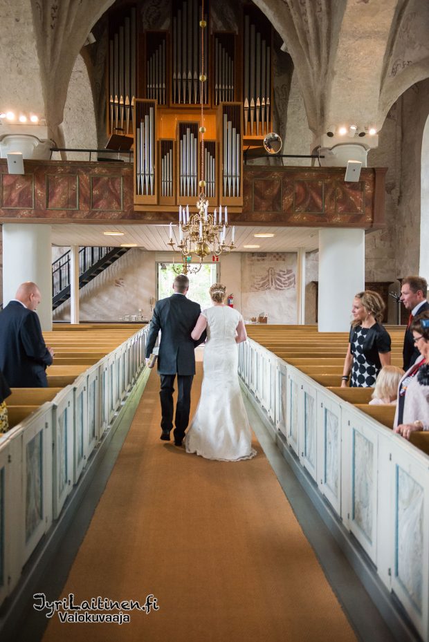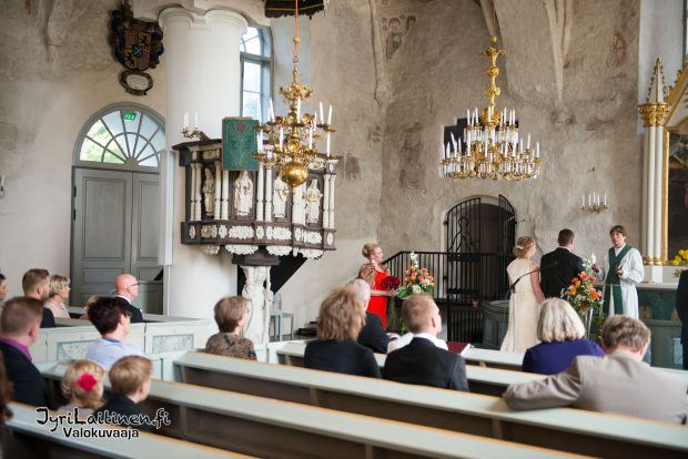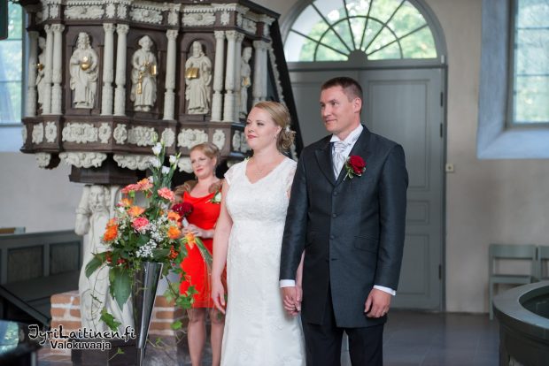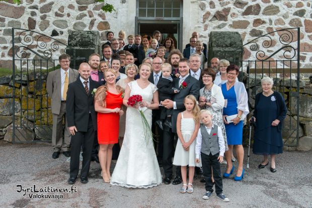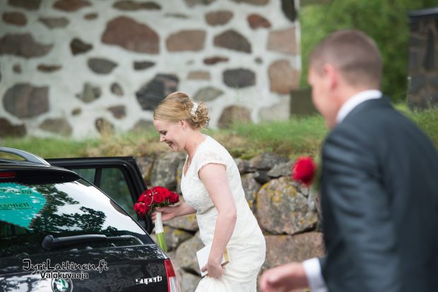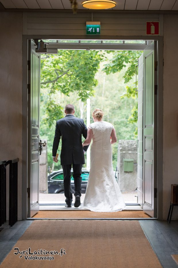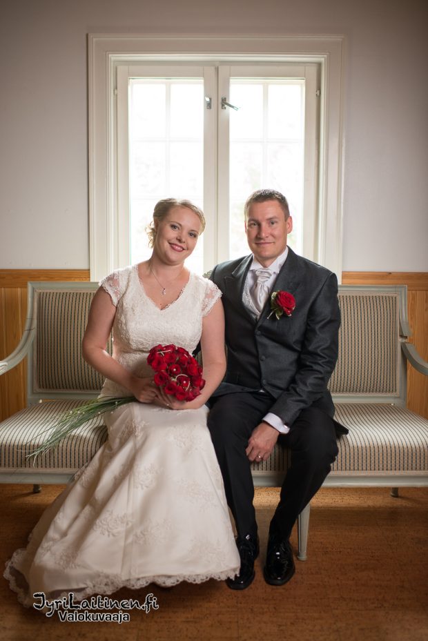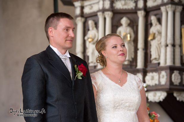 Syyskuinen lauantai tarjosi upeat puitteet häille, pikku sateesta huolimatta. Vihkiminen oli Pyhän Pietarin kirkossa, joka on 1400 -luvun lopulta oleva upea kivikirkko. Juhla oli Siuntion Lepopirtillä. Siuntiossa piisaa kaunista maisemaa ja peltoa, mutta sään ja aikataulun takia kuvasimme tällä kertaa Lepopirtin läheisyydessä.