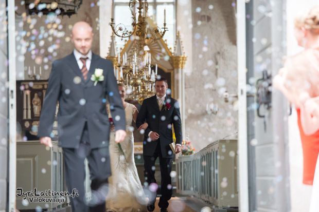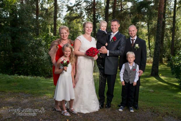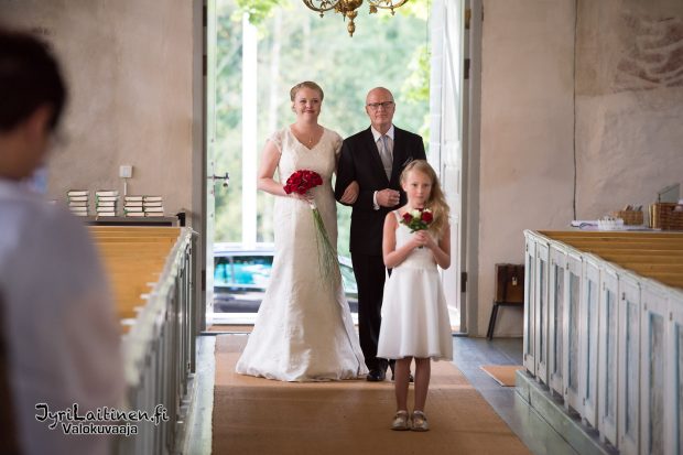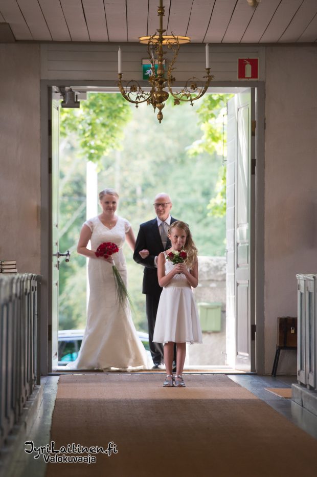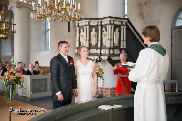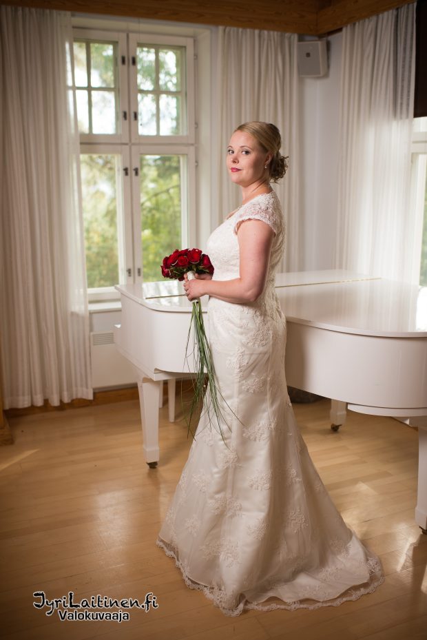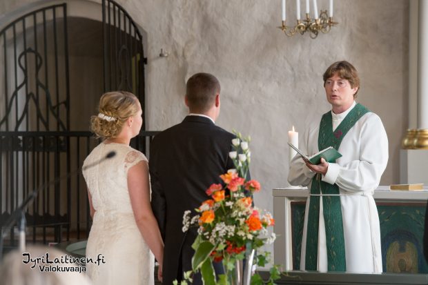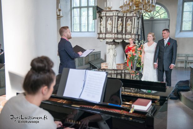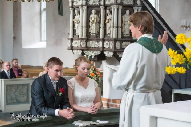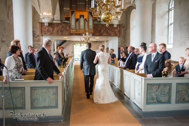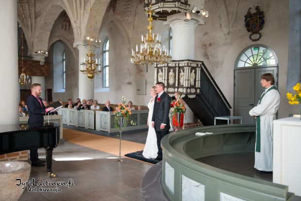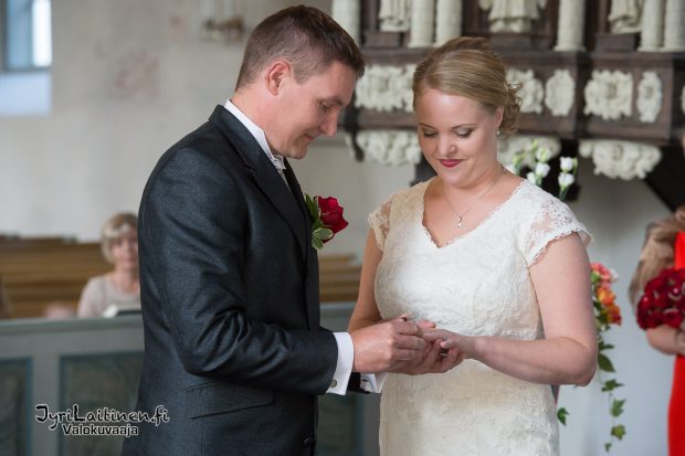 Syyskuinen lauantai tarjosi upeat puitteet häille, pikku sateesta huolimatta. Vihkiminen oli Pyhän Pietarin kirkossa, joka on 1400 -luvun lopulta oleva upea kivikirkko. Juhla oli Siuntion Lepopirtillä. Siuntiossa piisaa kaunista maisemaa ja peltoa, mutta sään ja aikataulun takia kuvasimme tällä kertaa Lepopirtin läheisyydessä.