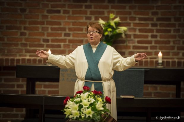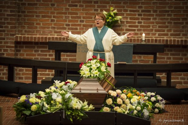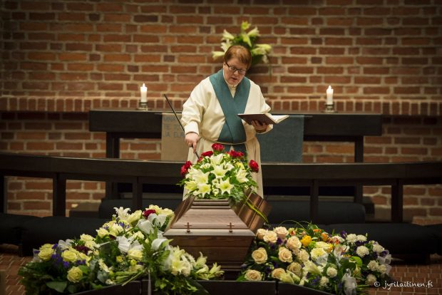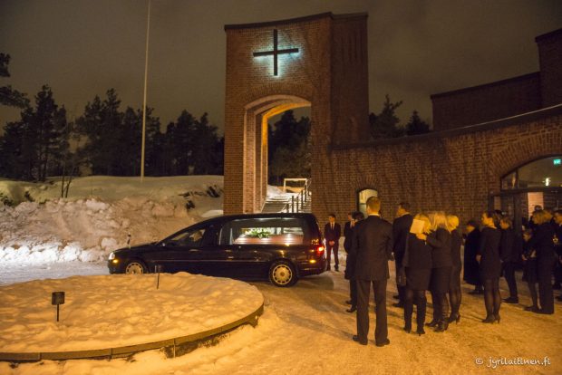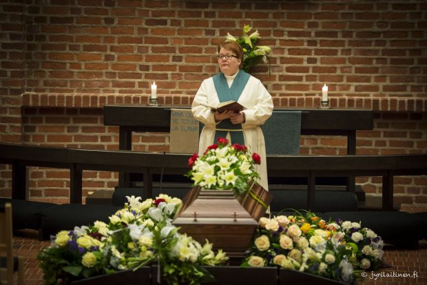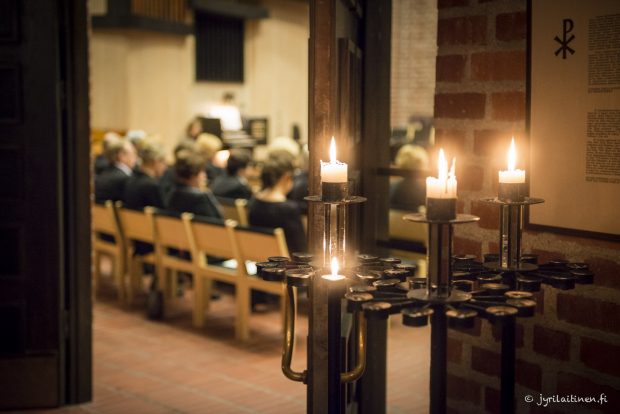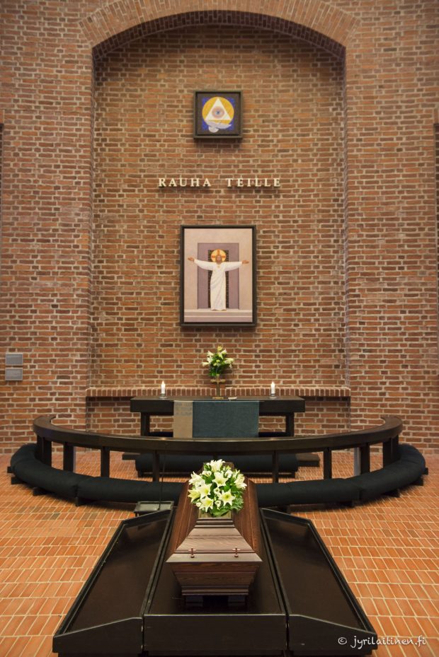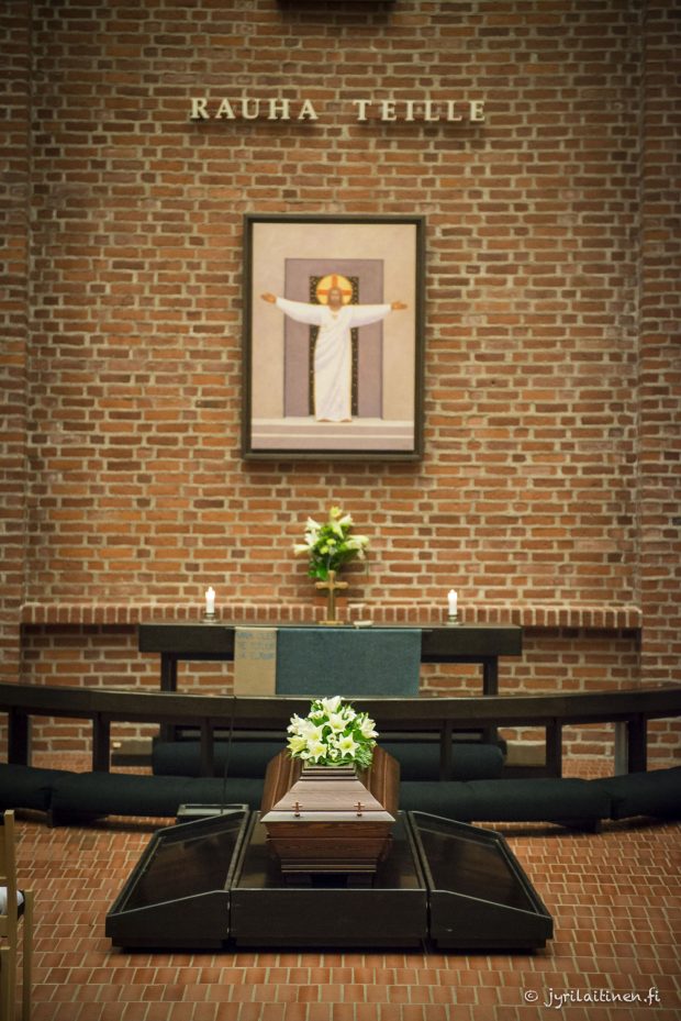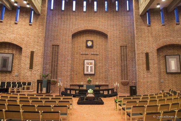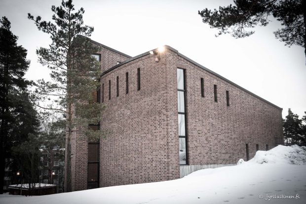 Tällä kertaa olin taltioimassa hautajaisia Leppävaaran kirkossa. Kauniin punatiilisen rakennuksen on suunnitellut arkkitehti Olli Kuusi. Rakennus valmistui 1979. Rakennus kiertyy ympyränmuotoisen pihan ympärille. Julkisivussa on holvikaaria, jotka antavat oman ilmeensä rakennukselle. Kirkkosalinkin seinät ovat punatiiltä.