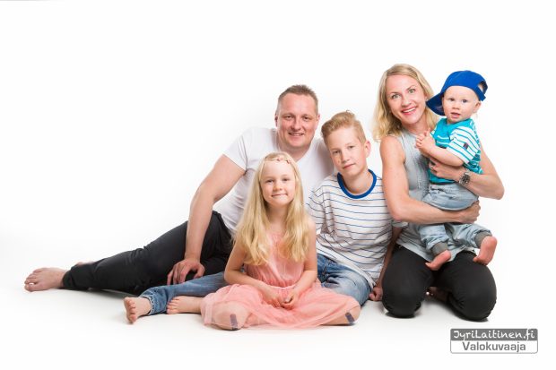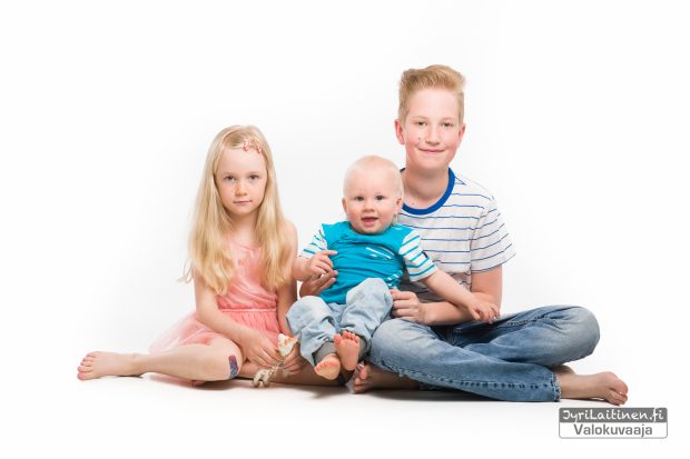 Lapsikuvaukset ovat olleet pitkään suosittuja studiolla, kasvavana trendinä on ollut jo jonkin aikaa että kuvataan koko perhe samalla kertaa. En kyllä ihmettele, jos kerran studiolle asti kerran tullaan niin miksi ei samalla hyödyntäisi tilaisuutta ja kuvaisi koko perhettä? Kannattaa toki pitää mielessä että lapsien kärsivällisyys ei riitä loputtomiin ja harva aikuinenkaan on tottunut kovin pitkään olemaan kameran edessä studiossa. Kokemus on osoittanut että 20-30 min varsinaista kuvausta on maksimi minkä yksivuotias jaksaa keskittyä.