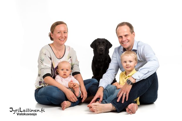 Perhekuvauksia tulee tehtyä paljon ja erityisesti studiolla, mikä ei näin syksyisin olekaan mikään ihme, tuosta ulkoilmasta ja säästä kun ei ikinä voi olla varma. Studio onkin loistava valinta, vähintäänkin varalla. Perhekuvauksissa voidaan ottaa monia erilaisia yhdistelmiä yhden kuvauksen aikana, toki lasten, miksei aikuistenkin, kärsivällisyyden huomioiden, lemmikeistä puhumattakaan. Valitettavan moni havahtuu vasta kun lapset tai lemmikit ovat jo isoja, ettei ole tallennettu kun ne olivat pieniä. Saman kuvauksen aikana on tosiaan mahdollista kuvata moniakin eri yhdistelmiä, hyvänä esimerkkinä tämän kertainen kuvaus.