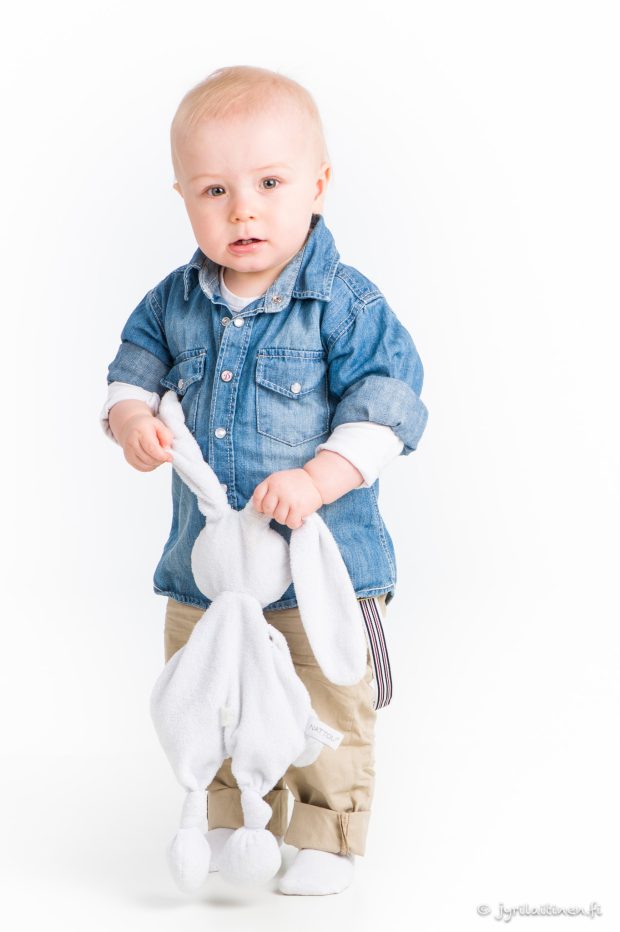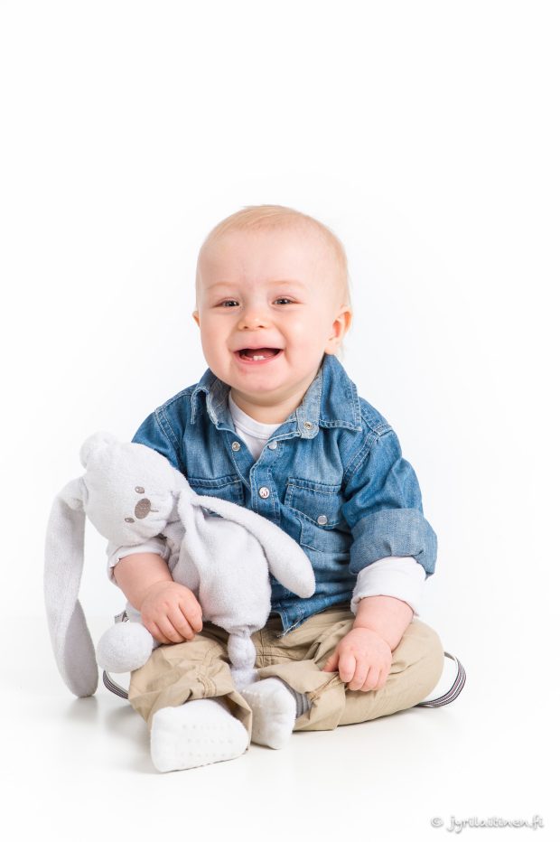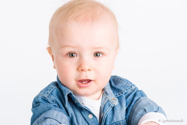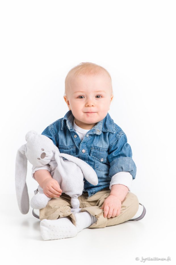 Yksivuotiaat ovat edelleen suosituin ryhmä studiolla ja helppoahan se on ymmärtää miksi. Syntymän jälkeen on yleensä kiirettä ja kaikki uutta, mutta kun 1v synttärit lähestyvät mieleen tulee että olisi kiva saada ikuistettua lapsi. Vuoden ikäiset ovat mukava kohde kuvata, vaikka loistavia hetkiä on myös heti syntymän jälkeen ja 2v sekä 3v. Suosittelisin kuvauttamaan lapsen joka vuosi syntymäpäivien tienoilla, näistä kuvista syntyy ihana kollaasi lapsen kehityksestä.