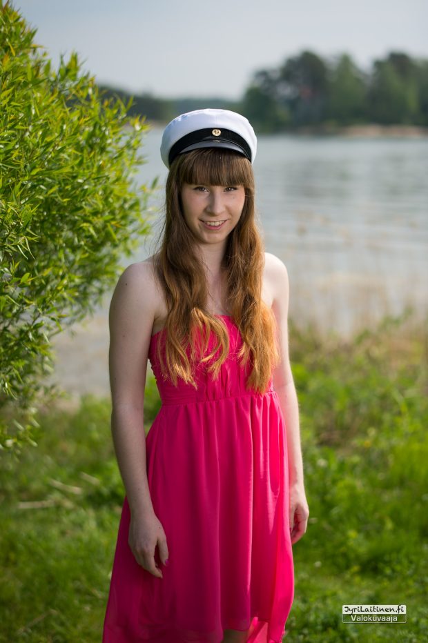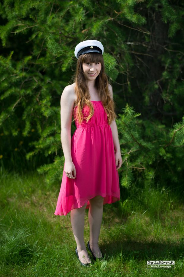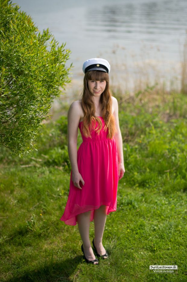 Onneksi tänä kesänä on ollut kauniitakin päiviä, varsinkin toukokuussa. Kuvattava halusi vihreyttä taustalle korostamaan puvun väriä, jälleen kerran Espoo ja Nuottaniemi toimivat kuvauspaikkana. Espoossa on paljon kauniita ja upeita paikkoja, mutta meren läheisyys tarjoaa niin paljon variaatiomahdollisuuksia että on vaikea olla suuntaamatta sinne.