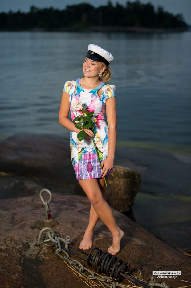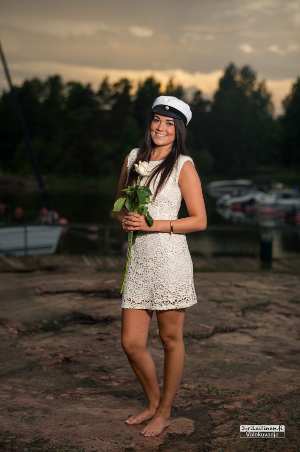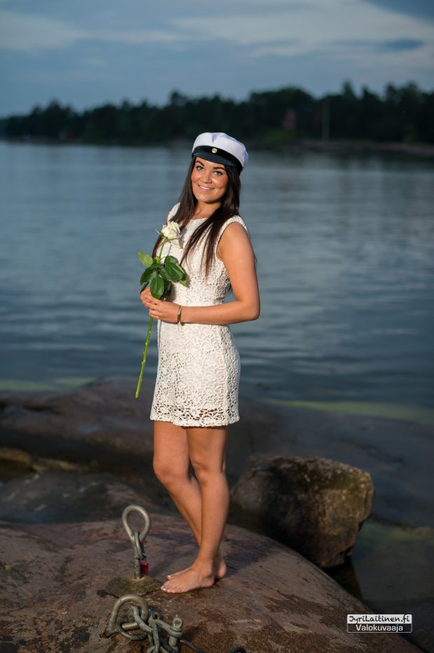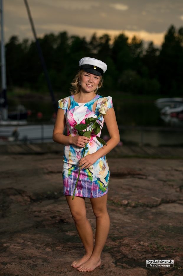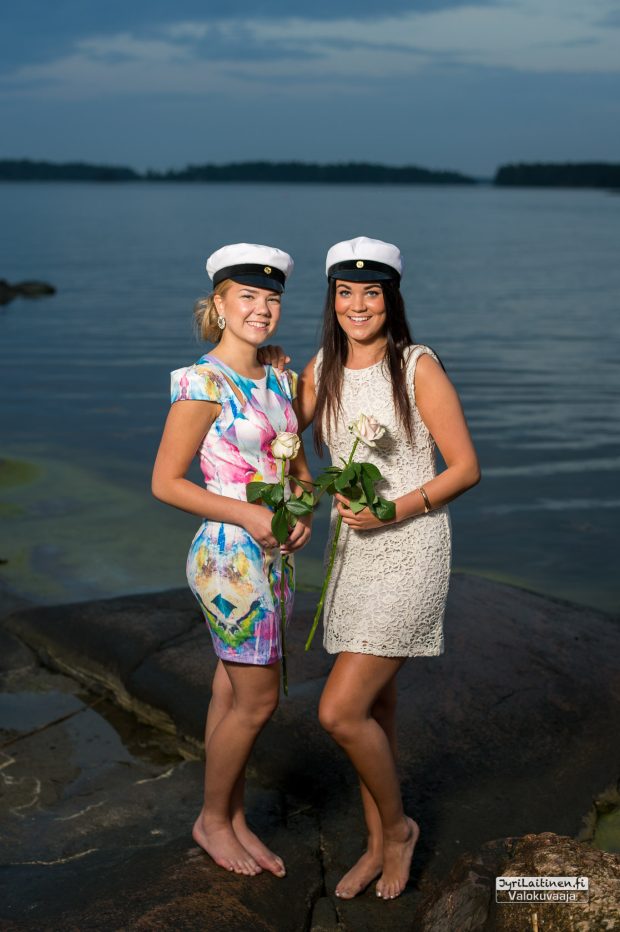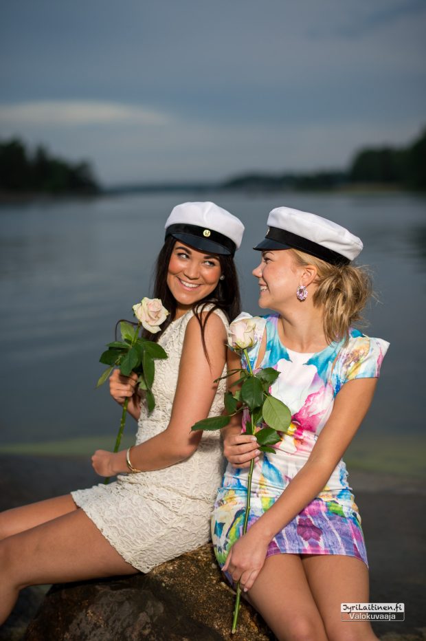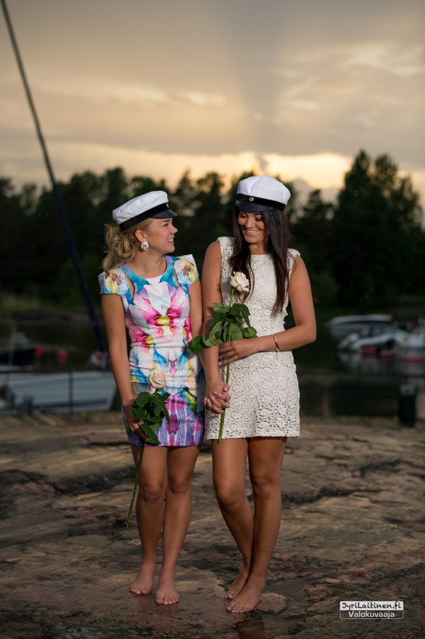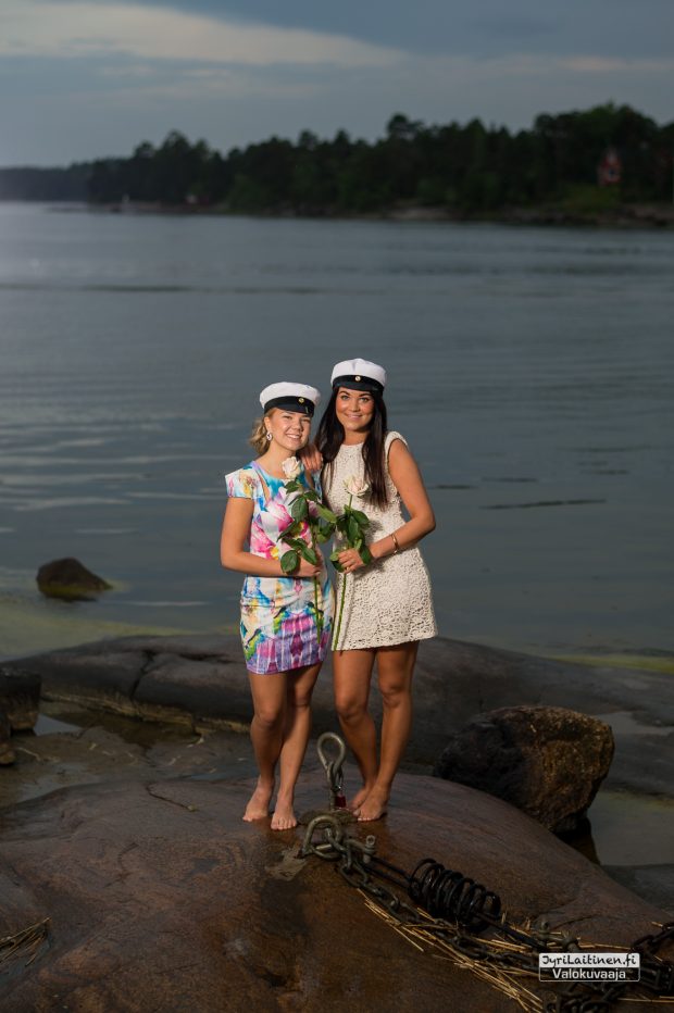 Lämpimänä kesäkuun alun iltana oli sovittu ylioppilaskuvaus Haukilahden rantaan auringonlaskun aikaan. Lämmintä oli vielä tuohon aikaan, mutta juuri kun piti aloittaa kuvaaminen alkoi sade, jota kesti jonkin aikaa, onneksi oli aikaa varattuna eikä ollut kiire minnekään. Toisaalta tuo sade oli onnenkantamoinen, toi kuviin ja kallioihin ihan uutta syvyyttä ja saimme otettua kaverikuvat tuoreista ylioppilaista. Suomen luonto antaa upeita puitteita valmistujaiskuvauksiin ja lopputulos oli erinomainen ja kaikkien mieleen.